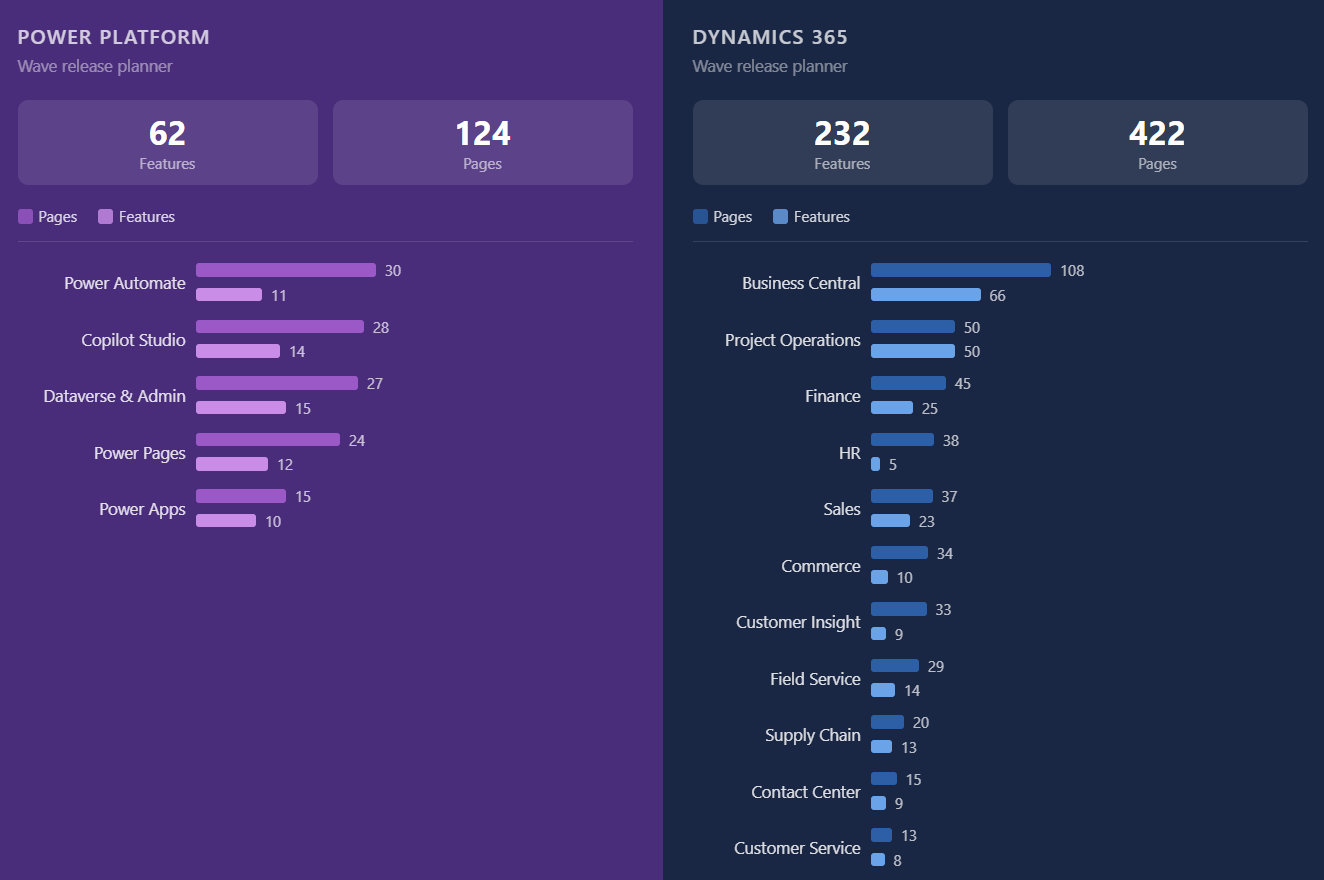 As usual, here is a quick analysis of the different sections of the release wave. Dataverse takes the lead in number of features, while Power Apps and Power Automate have the lowest number of released features. Is low‑code (as we know it) dead?